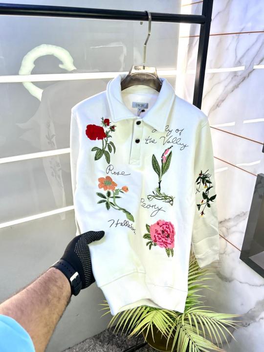 Home Premium sweatshirts Christian Dio r Imported Allover Embroidery Print Premium White Sweatshirts F3230-WH